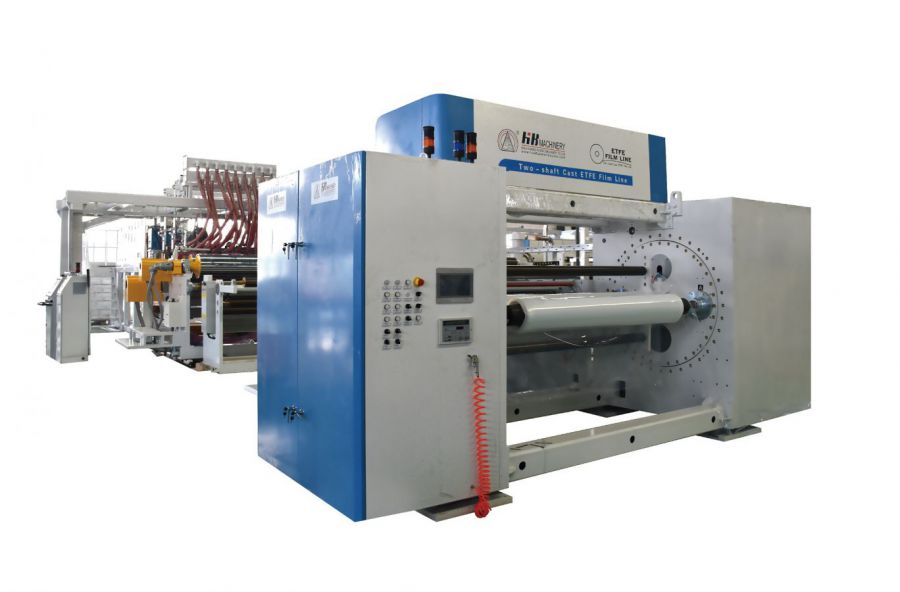 本生產(chǎn)線以特殊設(shè)計的擠出機和流延模頭,通過擠出流延法生產(chǎn)PVDF薄膜,可應(yīng)用于太陽能電池背板用膜,水處理用滲透膜、戶外建筑用保護膜和其他特殊功能性薄膜。ETFE薄膜不僅可以作為建筑和農(nóng)業(yè)用膜,還可以用于汽車防風(fēng)玻璃膜,防污內(nèi)外包裝材料、電池隔膜、粘合劑容器、食品工業(yè)輸送帶、太陽能接收器、軟性印刷線路板、計算機電線、醫(yī)用包裝用膜等。